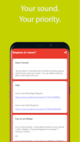 Este aplicativo é uma coleção dos melhores toques gratuitos e sons legais para Huawei. Ele inclui muitos tipos diferentes de toques, desde os mais populares, como toques de notificação e alarme, até os mais incomuns, como toques para mensagens e chamadas. Ele também inclui uma variedade de sons, desde os mais populares, como vozes, até os mais incomuns, como o som de um telefone sendo usado. Todos esses sons podem ser usados como toques para o seu telefone ou como toque de notificação.